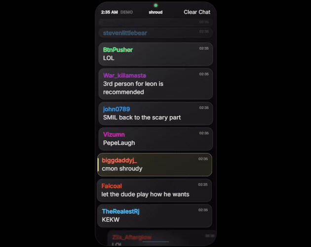 A mobile phone-styled Twitch chat overlay for streamers and creators.